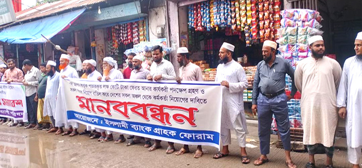 আড়াইহাজারে ইসলামী ব্যাংক গ্রাহকদের মানববন্ধন