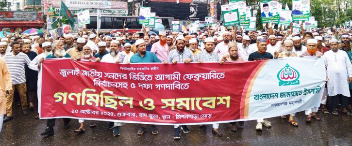 ডান্ডিবার্তা রিপোর্ট জুলাই সনদ বাস্তবায়ন ও পিআর (প্রোপোরশনাল রিপ্রেজেন্টেশন) পদ্ধতিতে জাতীয় নির্বাচনের দাবিতে গণমিছিল করেছে নারায়ণগঞ্জ মহানগর জামায়াতে ইসলামী। গতকাল শুক্রবার জুমার নামাজের পর শহরের মিশনপাড়া মোড় থেকে এ বিশাল গণমিছিল