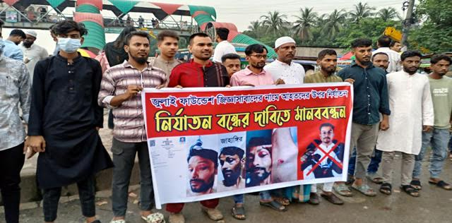 জুলাই যুদ্ধাদের জিজ্ঞাসাবাদের নামে নির্যাতন বন্ধের দাবিতে মানববন্ধন